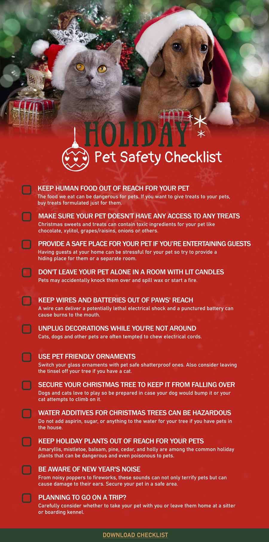 - Consider adding new or extra enrichment toys to redirect your pet's attention away from Christmas trees or decorations.